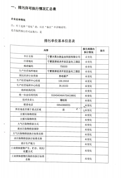 寧夏興昊永勝鹽業科技有限公司2024年排污許可執行報告